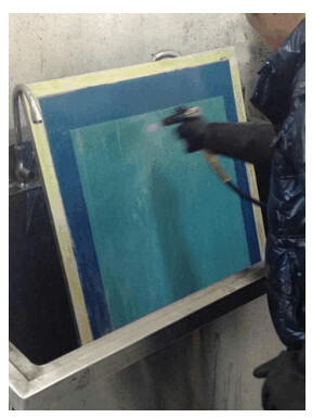 C、 將圖片現(xiàn)出來。其后對進(jìn)行曝光后的網(wǎng)版進(jìn)行清洗,必須要用水槍沖洗。