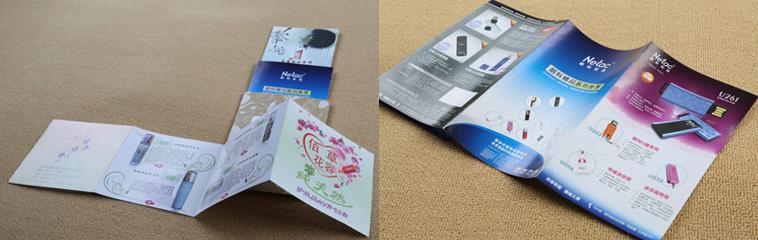 折頁是宣傳單一種常見的樣式,大部分采用四色印刷,一般為8開二折或四折,16開二折或三折,中間內容視產品而定。設計要盡量精致美觀, 展示的產品應選擇佳角度,力求逼真和清晰,字體清秀,色調與內容和諧,以增加客戶購買力為終目的。